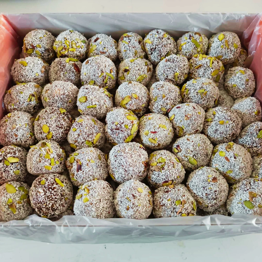 Muhtevasında şeker, nişasta, gün kurusu kayısı ezmesi, çöğen otu, tarçın, zencefil, karanfil, limon tuzu, Hindistan cevizi bulunur ve üst kısmına Antep fıstığı serpiştirilerek elde edilir. Yuvarlak toplar şeklindedir.